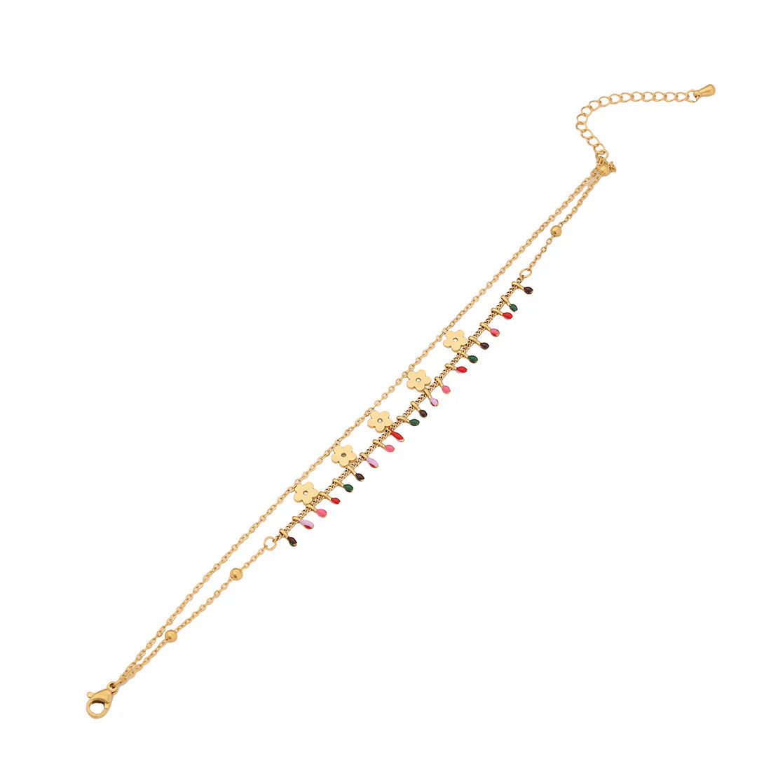Cavigliera in acciaio inox con pendenti smaltati e fiorellini