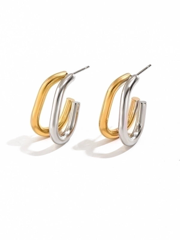 Orecchini in acciaio inossidabile unione di 2 semi ovali, uno dorato e uno argentato